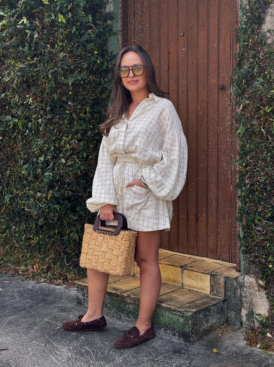 O shorts Eleonora é confeccionado em tecido leve com superfície levemente texturizada. A peça solta ao corpo possui cintura alta, cós com elástico e cordão embutido para ajuste e bolsos frontais aplicados.
