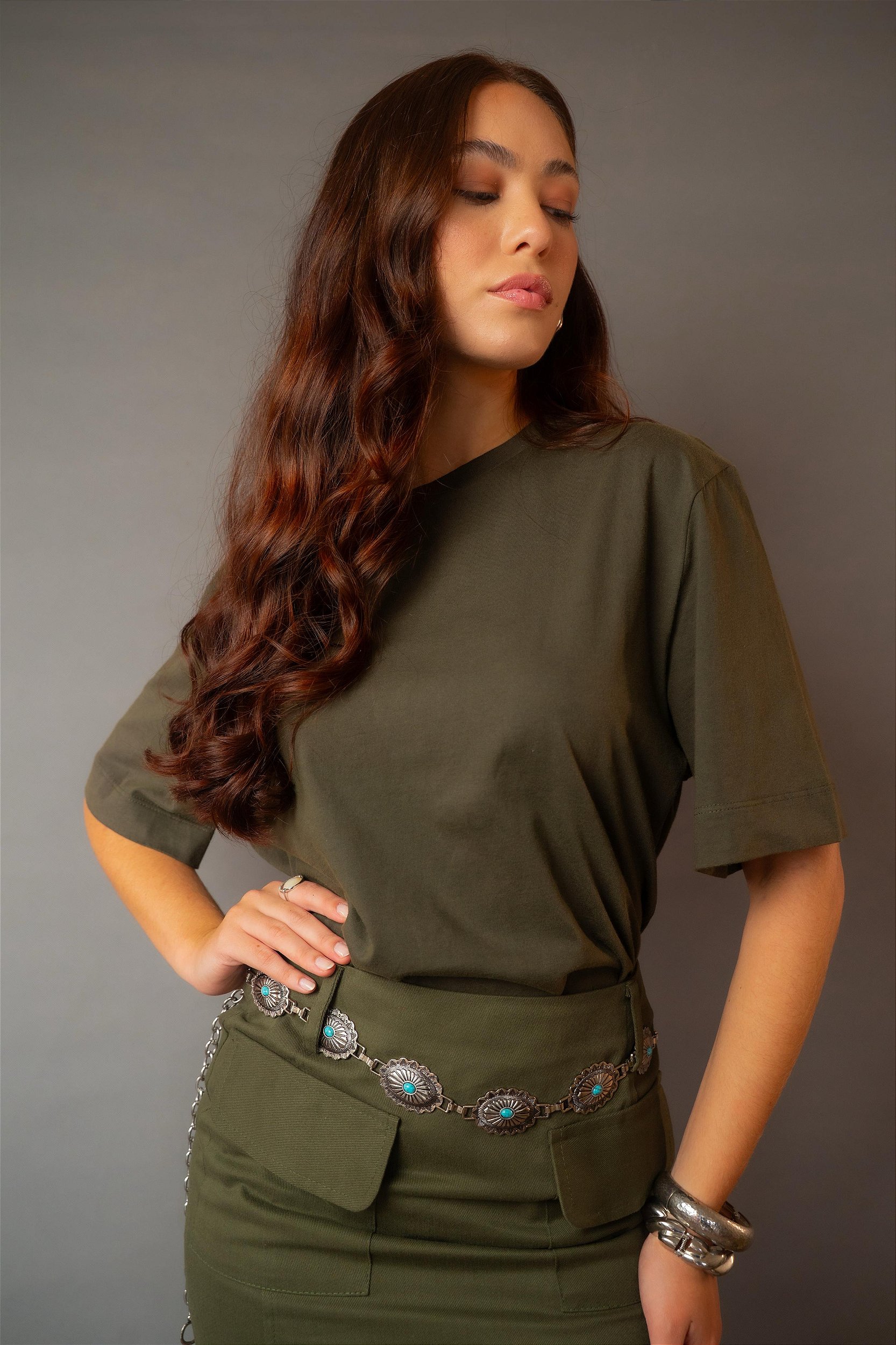 A blusa é confeccionada no algodão. A peça possui decote redondo, mangas curtas, shape solto, caimento reto e acabamento pespontado.